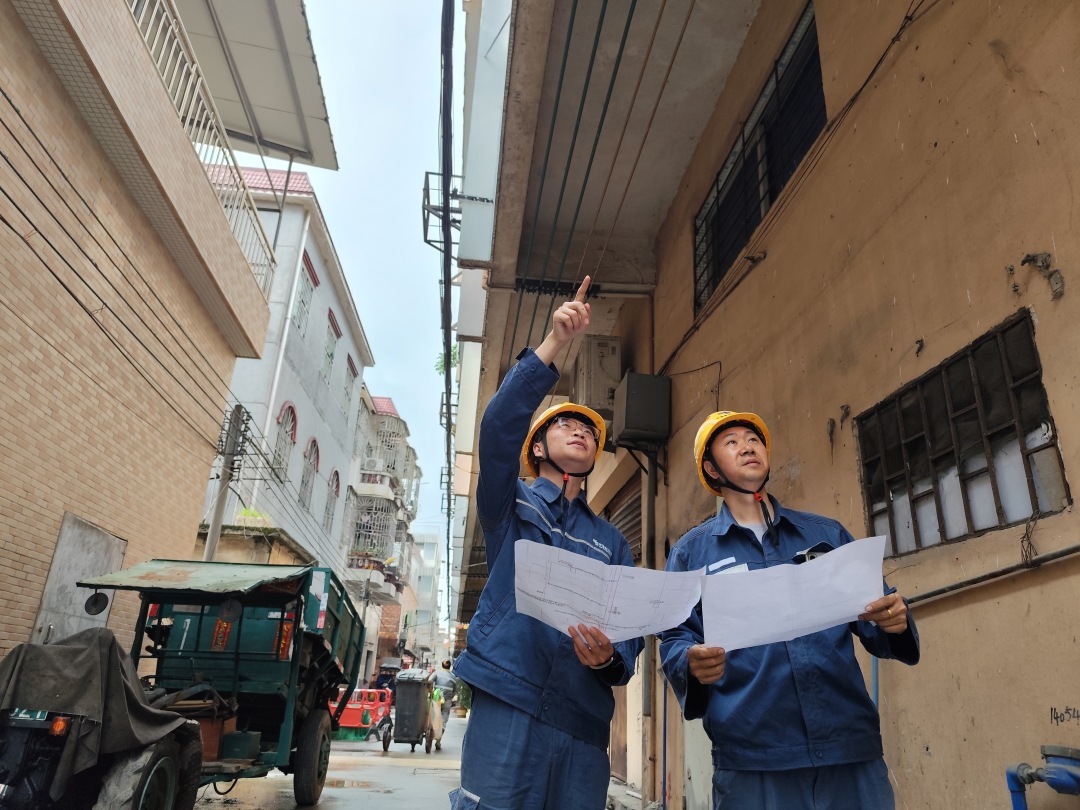 广州番禺供电局工作人员正在开展现场勘察确定方案可行性。