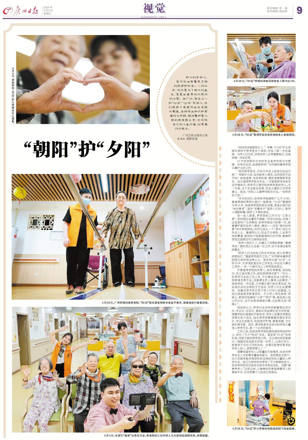 如今的年轻人,面对就业有着更多样的选择和机会。一份工作,不仅是为了眼下的生活,更是在追寻时代前行的光亮。在广州,有这么一批“90后”“00后”年轻人,他们选择了养老行业这条新兴赛道,在用专业知识和青春时光照顾、陪伴着如家人般的银发族之余,也实现自己的人生价值,让青春闪闪发光。