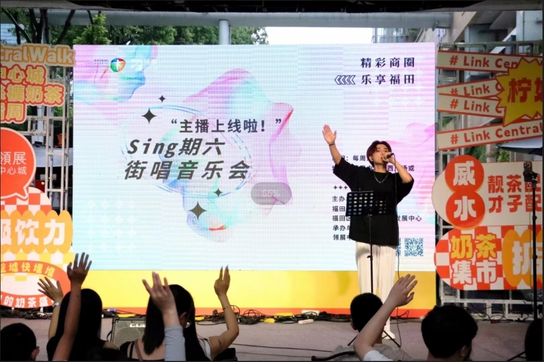 以文塑旅,以旅彰文。五一期间,福田区充分挖掘流行艺术、整合本土资源,提升城市魅力值,加速经济效益与社会效益联动发展。在繁华的福田商圈,多种艺术轮番上演,多元共竞,塑造商圈文化内核,推动商圈发展提质升级。在中轴云廊和领展中心城,Smiley欢乐进福田系列活动精彩来袭,微笑“绘”、微笑“舞”、微笑“聚”、微笑“拍”持续释放活力。活动设置了缤纷多彩的Smiley户外打卡点,掀起了一波市民打卡热潮。潮味与趣味共融的打卡形式,为市民提供了积极的情绪价值,也让福田商圈成为市民蜂拥而至的“潮流新宠儿”。五一期间,领展中心城G层西广场还上演了“主播上线啦”sing期六街唱音乐会,才艺主播倾情献唱,音乐热浪“嗨”翻商圈,单场线上观众3万人次。福田通过各种主题市集的搭建,将消费平台搭建在音乐会、舞蹈快闪等活动现场,将消费自然融入生活,也呈现出新一轮消费景观。中轴云廊星空营地音乐市集、520荔枝主题市集等,充实消费者的参与感与生活体验感。通过夜间经济、网红经济、音乐节经济,推动构建“艺术展演+生活消费+衍生产品销售”链条式营销模式,把握“流量”新趋势,促进又一轮消费热潮,推动福田文旅产业高质量发展。