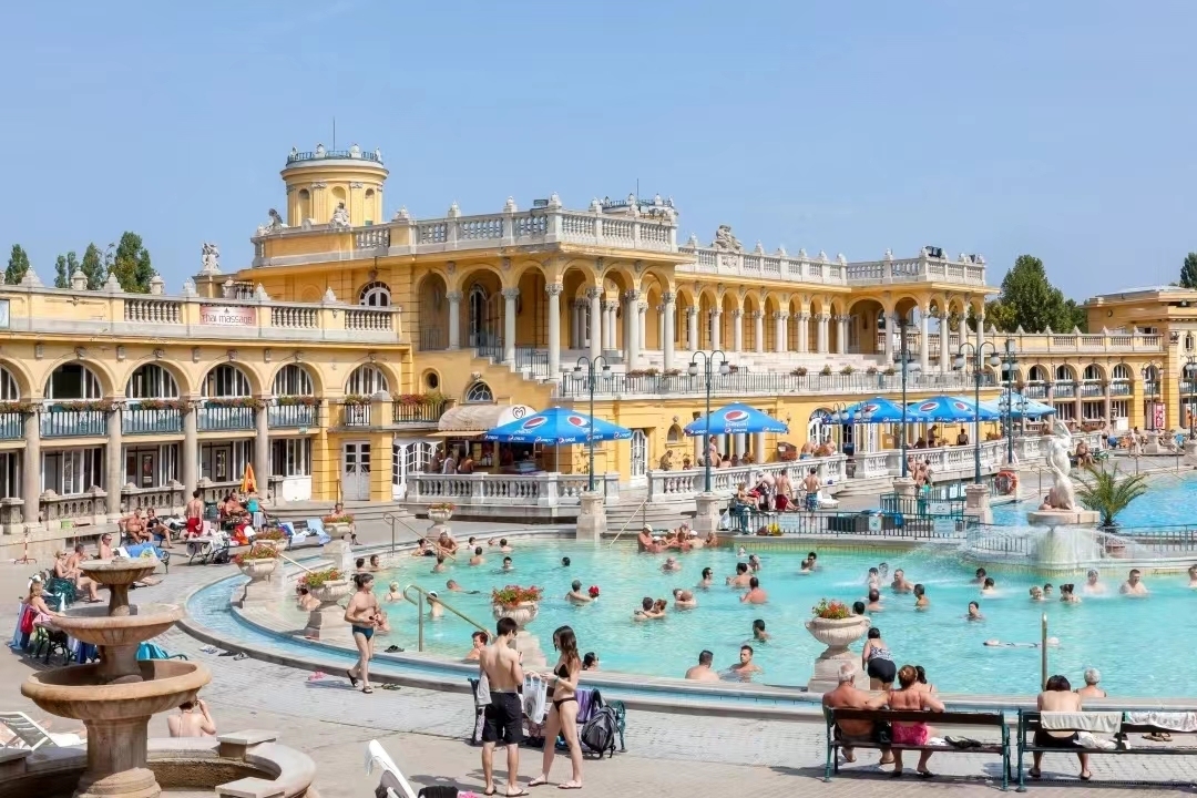 位于城市公园内的瑟切尼温泉浴场是布达佩斯最著名的温泉之一,也是欧洲最大的天然温泉浴场之一。这里拥有多个室内和室外温泉池,水质清澈温暖,令人陶醉其中。