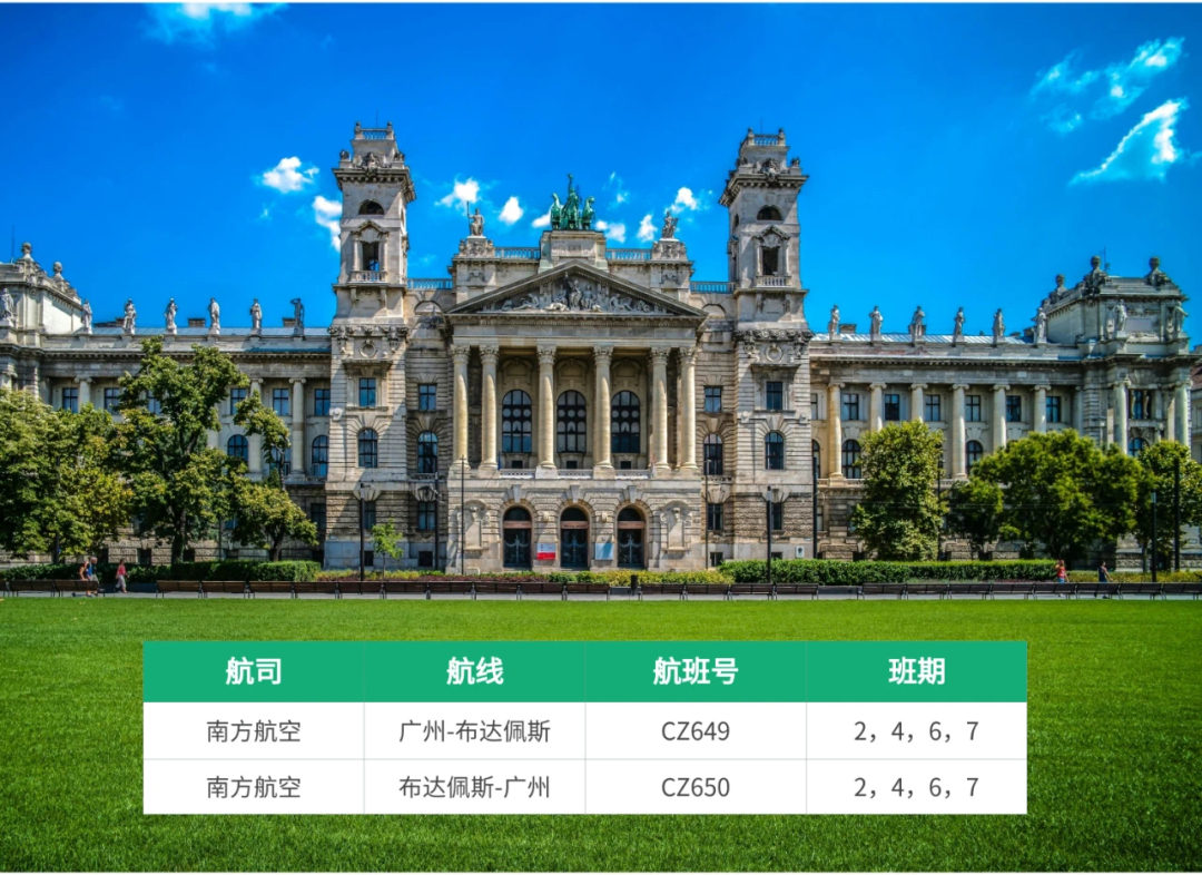 2024年6月27日起,中国南方航空广州至布达佩斯直飞航线将正式启航。从广州白云机场起飞,无需中转,可直抵欧洲著名旅游胜地布达佩斯。