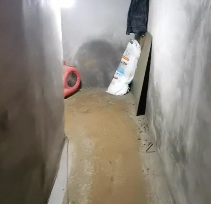 5月4日一早,小区2号楼前又传来施工的声音。居民张女士与其他两位邻居,从2号楼前会所的地下入口,走进了被挖开的“地道”。“一走进去我们就惊呆了,没想到楼底下有这么大一个地道,有一人多高,走了30多米还不见到头。”