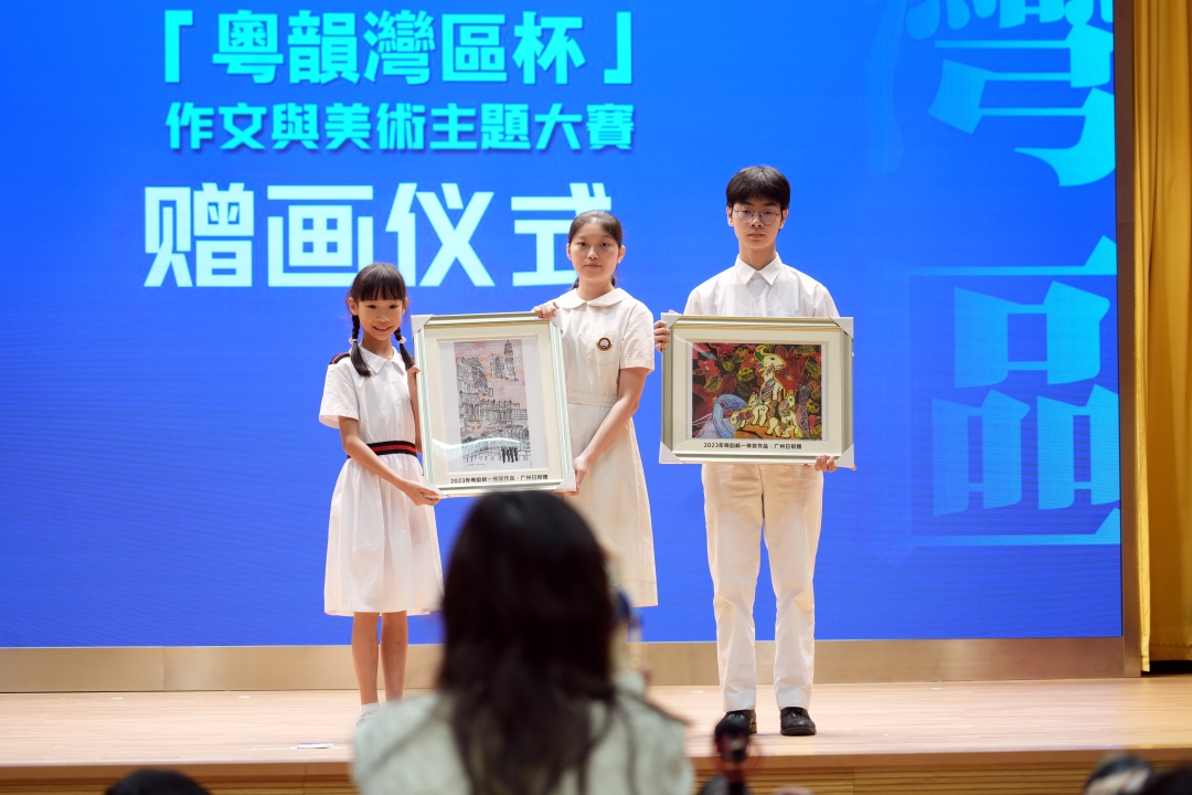 大賽啟動儀式在香港麗澤中學舉辦,現場展出40件粵港澳三地中小學生美術作品,成為一道亮麗的風景線。每一幅畫的筆觸飽含濃濃的深情,刻畫出穗港澳三地的標誌建築、傳統藝術和地道美食等等,充分展現了粵港澳青少年對嶺南文化的熱愛和創造力,也讓人感受到他們對文化傳承的責任感和使命感。