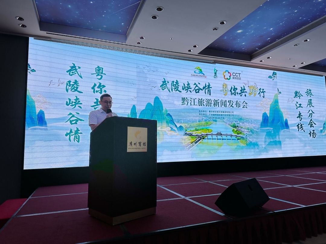 今日,由重庆峡谷城文旅集团有限公司联合广州康辉国际旅行社有限公司共同策划,主题为“武陵峡谷情·粤你共黔行”的黔江旅游新闻发布会暨四省联游新品推介会在广州举行。黔江是北纬30度穿越的腹地,生态、候、文旅资源得天独厚。通过此次在广州的亮相,黔江向粤港澳大湾区展示其独特的魅力。