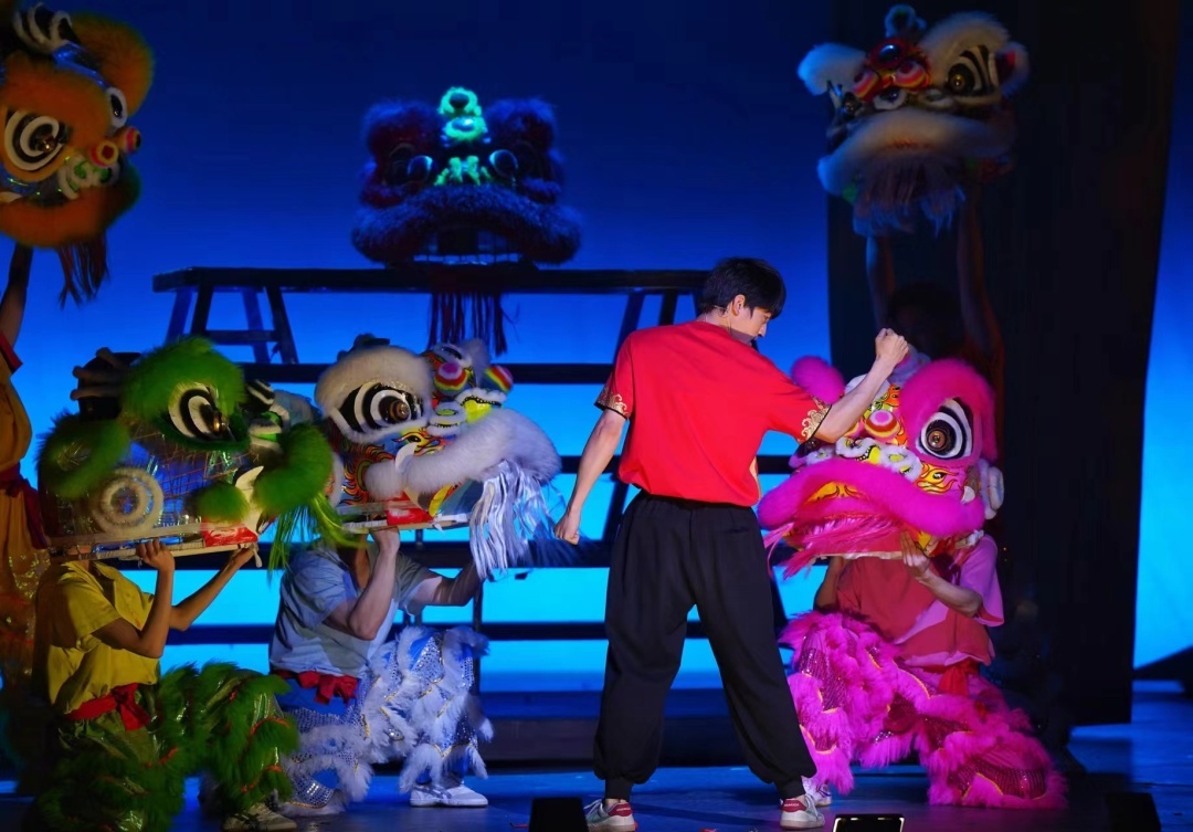 演出中,演员们需要同时兼顾歌唱、舞蹈、表演和舞狮,这对他们的体力和技能都是极大的考验,他们用精湛的表演展现出剧中角色对梦想的执着追求和不懈努力。