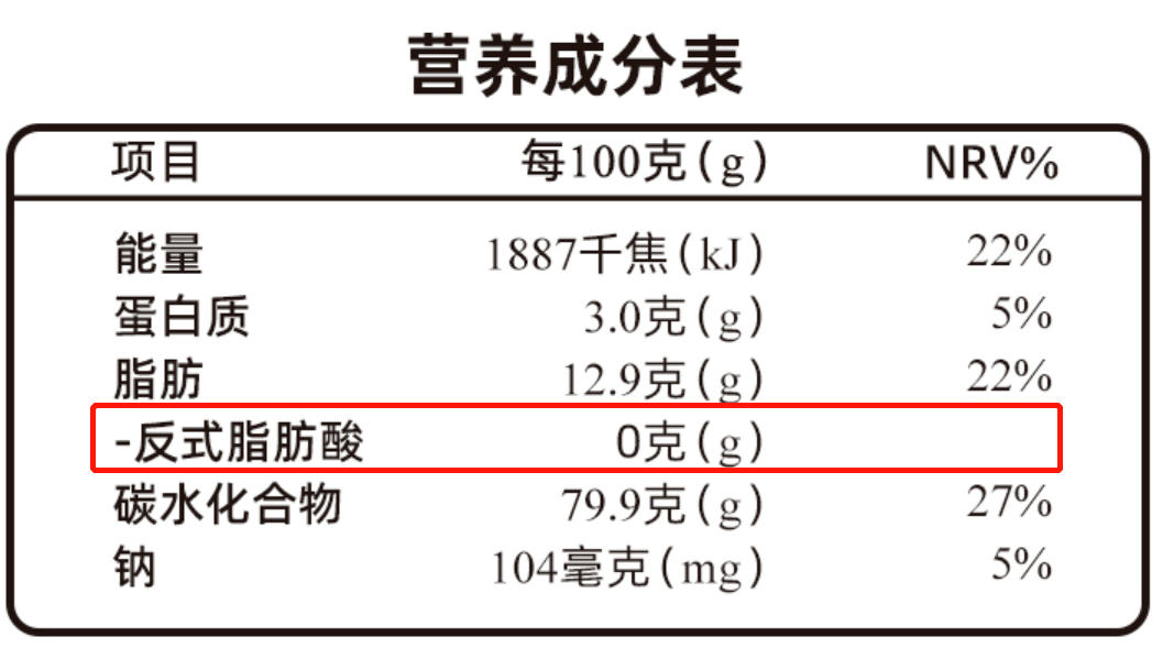 我国标准中还规定,如果 100 克食品中的反式脂肪酸含量低于 0.3 克就可以标示为“0”。