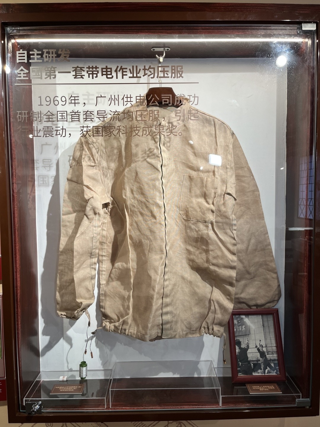 在展厅里,记者还看到1969年由广州供电公司自主研发的全国第一套带电作业均压服,当年引起了行业震动,荣获国家科技成果奖。