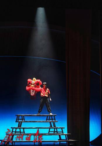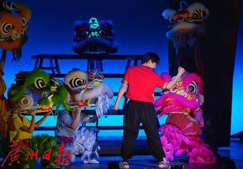 舞台上,少年追梦画卷在音乐、舞蹈和舞狮的交汇演绎下徐徐展开,故事情节婉转曲折、荡气回肠,粤语和醒狮作为岭南文化的重要符号,在音乐剧中被赋予了新的生命和活力,使岭南文化生动活泼地体现在文艺作品中,充分发挥优秀文艺作品启迪思想、温润心灵、陶冶人生的作用。