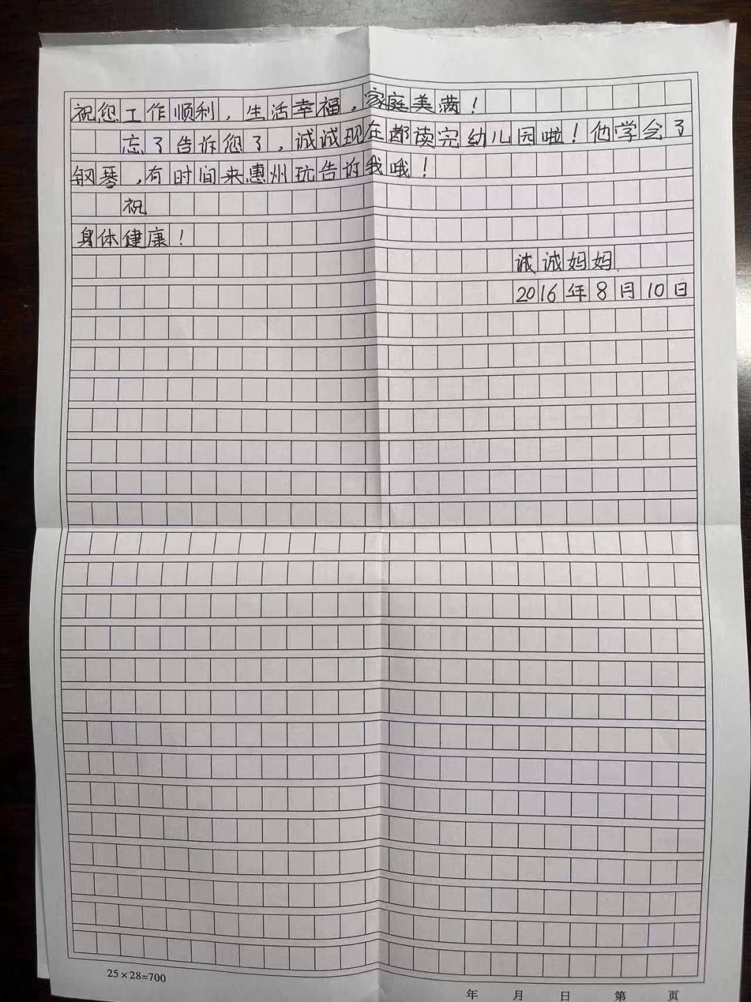 “素云,诚诚已经1.75米高了,很健康,上初一了.......”