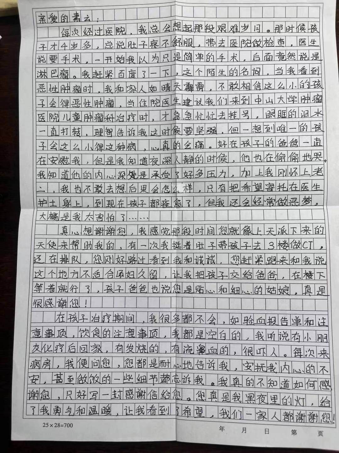 “亲爱的素云,每次经过医院,我总会想起那段艰难岁月......到现在孩子都痊愈了,但我还会经常做噩梦,我太害怕了......真心谢谢你,就像天使来帮助我.......”
