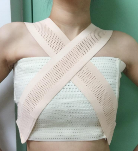 传统胸带设计弊端多,比如材质硬、厚、粗糙、无法完全贴合胸部上宽下窄的形状。或是稍微动一下就容易滑落,不易于伤口的恢复,并且胸带一般为男女同款,女性穿着起来会有一定的尴尬之处。