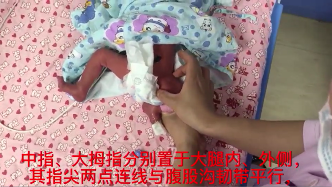 为了解决这一难题,罗美团队通过查找文献及临床实践,得出了“三指”定位法。让患儿处于仰卧位,将一侧大腿向外展开,使其与腹股沟成90°角,护士将中指、大拇指分别置于大腿内、外侧缘,指尖两点连线与腹股沟韧带平行,食指置于两指尖中点,下方2厘米处即为穿刺点,将针倾斜约30°-45°刺入,便可顺利完成采血。