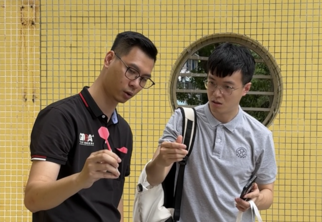 在这次研讨会的间隙,何聪毅抓紧机会向广东省飞镖运动协会的专家学习,请对方纠正自己的动作。他认为,飞镖入门是可以零基础的,只要反复练习,准度就能提高。他和罗达都自信地表示,数学老师是完全有能力教飞镖的。