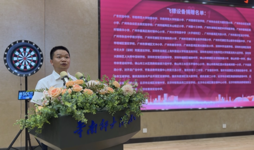 本次活动由广东省学生体育艺术联合会、广东省飞镖运动协会主办,华南师范大学附属小学承办。广东省学生体育艺术联合会会长朱征宇感谢风向镖(广东)体育科技有限公司向全省超过50所中小学赠送飞镖设备。他称赞飞镖不仅技巧性与策略性并重,更是一项锻炼专注力、提高心理素质的运动。广东省学生体育艺术联合会希望通过这次活动,把校园飞镖热潮从珠三角辐射至全省范围,加上每年举办全省中小学飞镖锦标赛,让学生们在比赛中更加了解和喜爱这项运动。