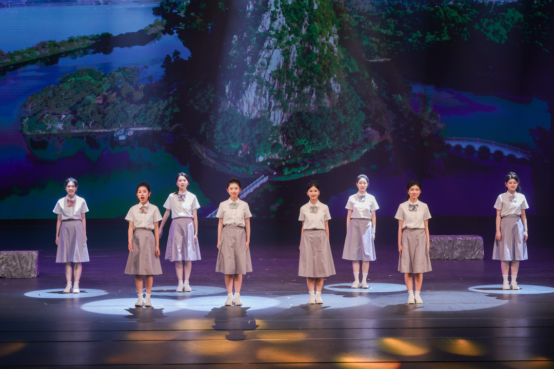 当晚,大剧场内灯光璀璨,学生们或抚琴弹奏,让歌声的清脆悠扬回荡在观众心间;或身着华丽戏服,以粤剧的细腻表演诉说着一段段历史佳话;或舞动轻盈的身姿,将舞蹈与岭南的故事交织,演绎出一幅幅动人的画面。