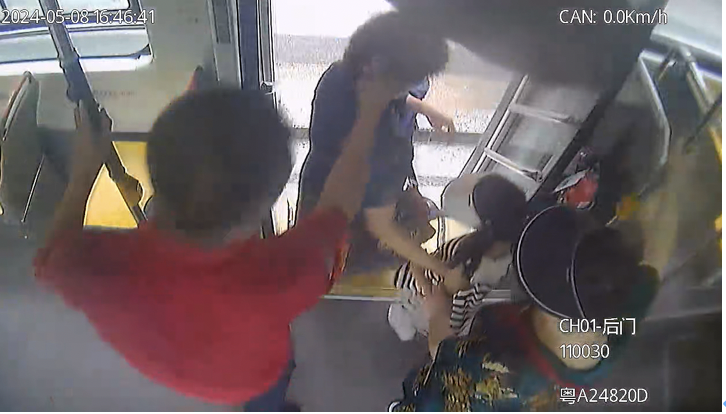 据悉,5月8日下午,广州城区下起暴雨,16时45分左右,广州巴士集团一分公司997线车长洪林正如往常一样执行营运任务,车辆行驶至沥滘大埗头站停站上下客时,洪车长通过车内视频监控留意到,有两位阿姨带着一名小女孩起身准备下车,但她们三人都没有带伞,看着车外的滂沱大雨,三人不知如何是好。