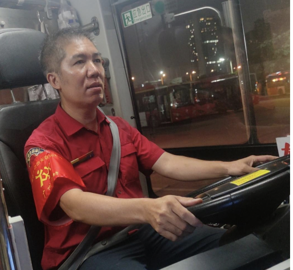 “你们不用着急!我这里有伞,可以送你们下车。”洪车长见状马上出声提醒几位乘客不用急,安全停好车后,他取出自己的雨伞,先后三次把三位乘客送到站台候车亭处,确认乘客不会被淋湿后回到车上继续营运。