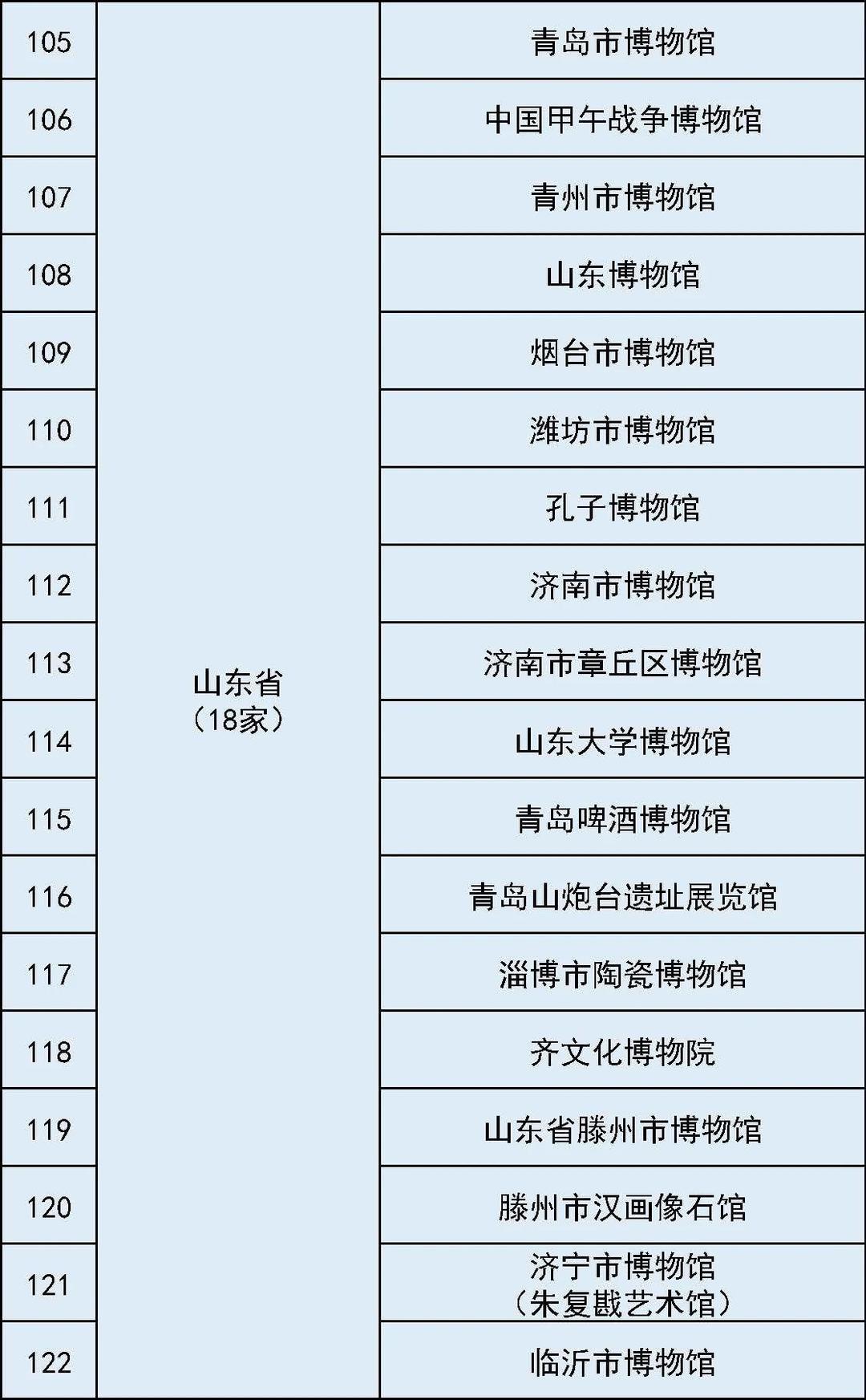 近日,中国博物馆协会发布《关于第五批全国博物馆定级评估一级博物馆评估结果的公示》。中国华侨博物馆、中国妇女儿童博物馆等123家博物馆拟公示定级为一级博物馆。