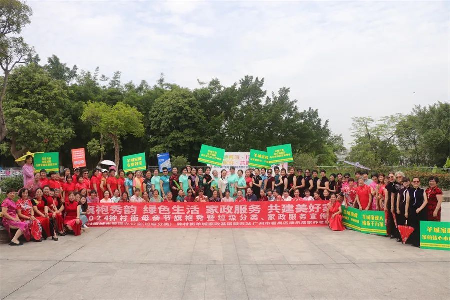5月11日上午,由番禺区钟村街城市管理办(垃圾分类)指导,钟村街羊城家政基层服务站主办的母亲节旗袍走秀暨垃圾分类、家政服务宣传活动,在大夫山森林公园文化广场举行。10支队伍200余名银发巾帼欢聚现场,一同展现旗袍之美。
