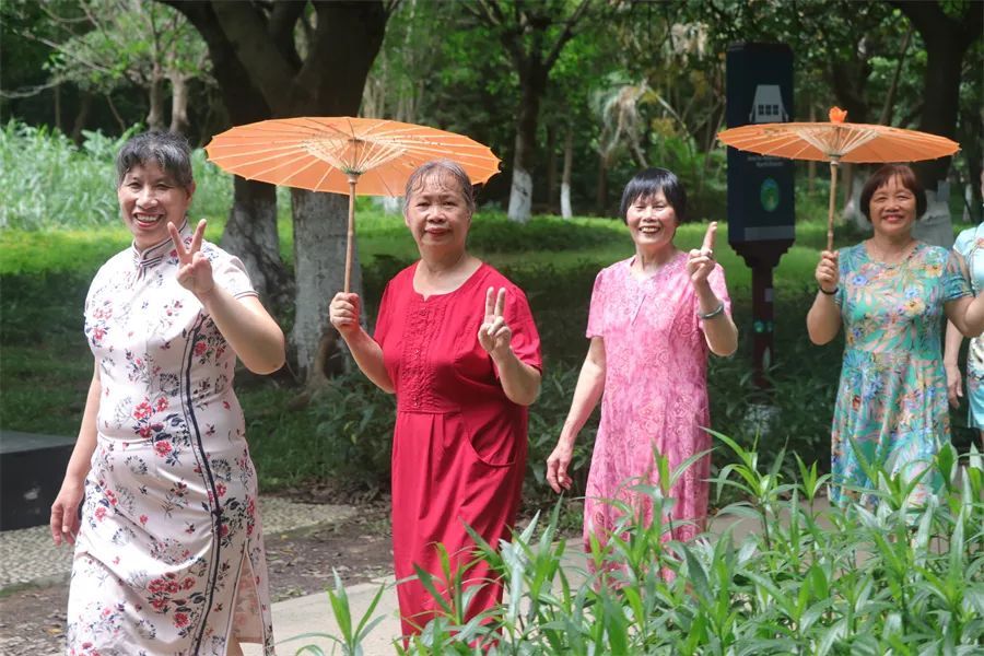 手举油纸伞的“模特”、身穿旗袍展现“东方雍容”……打扮典雅时髦的长者依次迈着“台步”相聚大夫山森林公园展现各自魅力。这是5月11日早上,番禺区钟村街举行的一场特别的“走秀”活动,“模特”就是本地乃至番禺各镇街的200位村居长者。据悉,参加“旗袍走秀”的“模特”年龄最大的是一位近90岁的老奶奶。