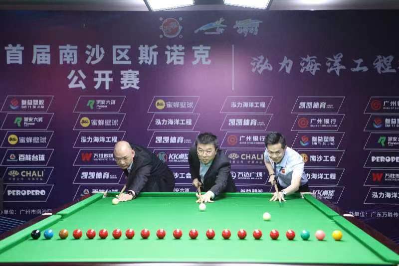 5月13日,首届南沙斯诺克(泓力海洋工程杯)公开赛在广州南沙万达广场4楼KK桌球俱乐部正式拉开序幕。广东省台球协会常务副会长邓世豪、广州市南沙区文化广电旅游体育局副局长吴家亮、广州凯凯体育文化有限公司广州区域经理傅利鹏等领导嘉宾出席开球仪式并出杆开球。