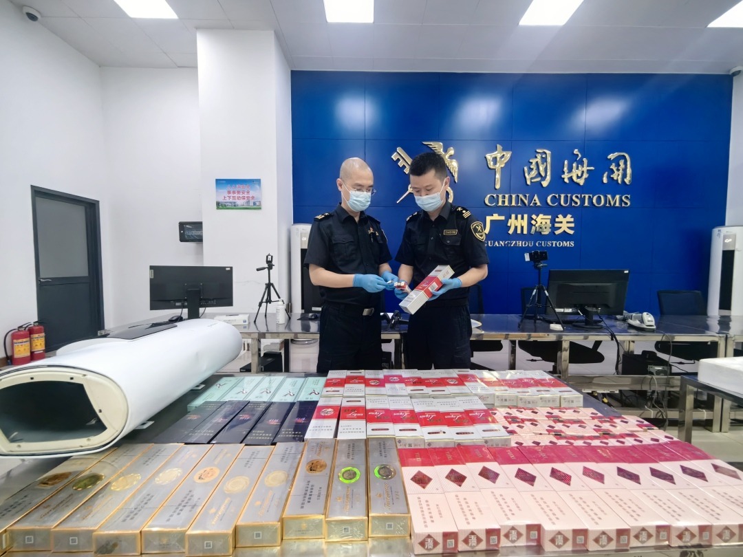 广州海关在跨境电商渠道查获夹藏出口的香烟8580支
