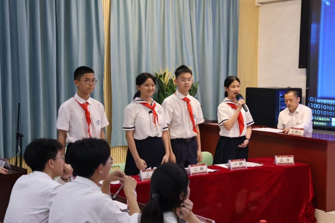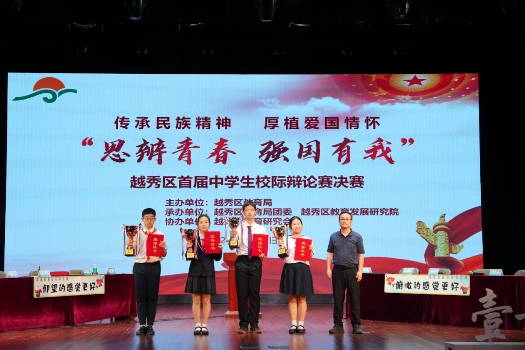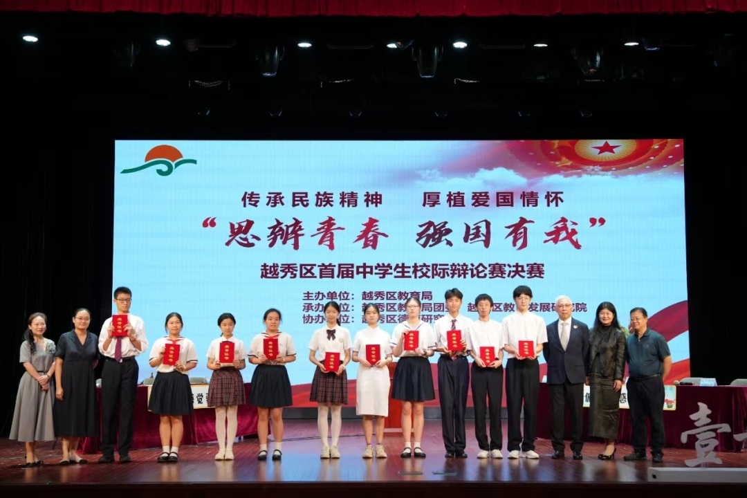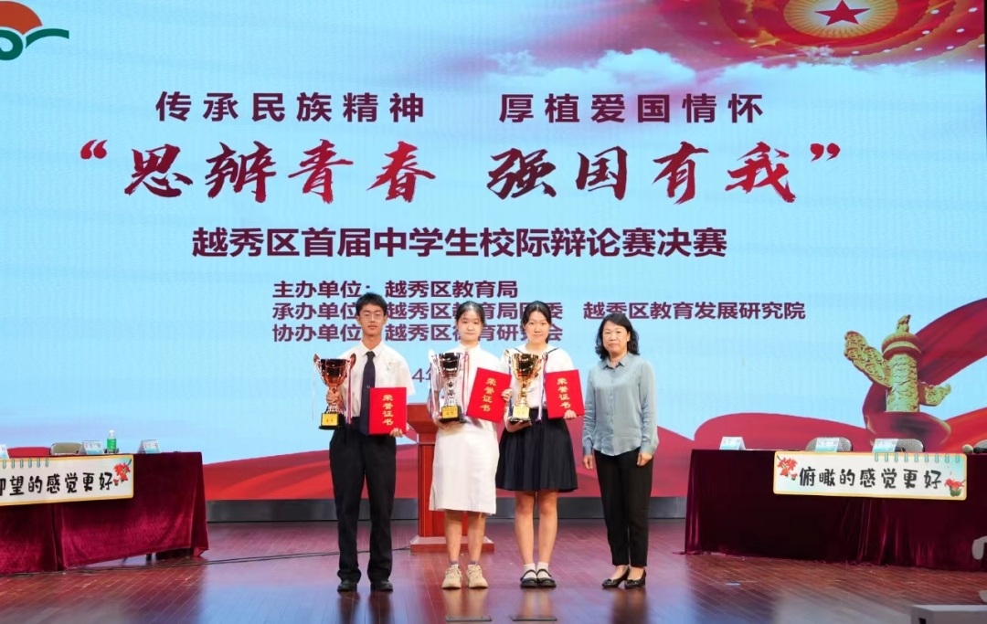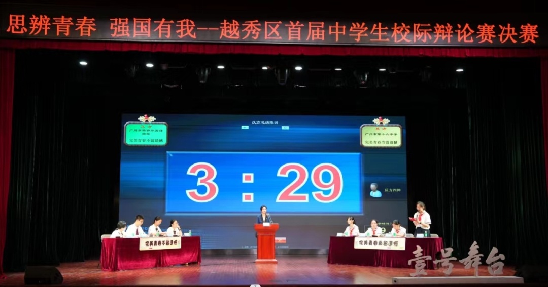 据介绍,此次辩论赛以“思辨青春 强国有我”为主题,面向全区各校征集辩题,选出“理想的确立以个人意愿还是社会需要为主”“爱国重在心还是重在行”“挫折有利于还是不利于青年人的成长”等关乎青少年健康成长与价值取向的辩题,让学生们通过辩论对当今热点话题有了多维度的思考,点燃越秀青年“以辩促思,以思促学”的热情,激发高度与深度并重的思想交流。通过此次活动,助力了越秀青年学子涵养家国情怀、践行责任担当,为越秀教育高质量发展凝聚了青春智慧和力量。