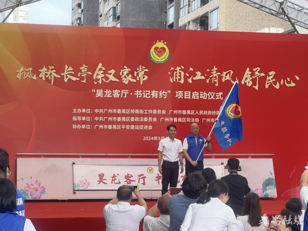 仪式上,领导共同启动了“昊龙客厅·书记有约”项目。活动为“盛国调解志愿服务队”授旗,并为成员代表颁发证书。