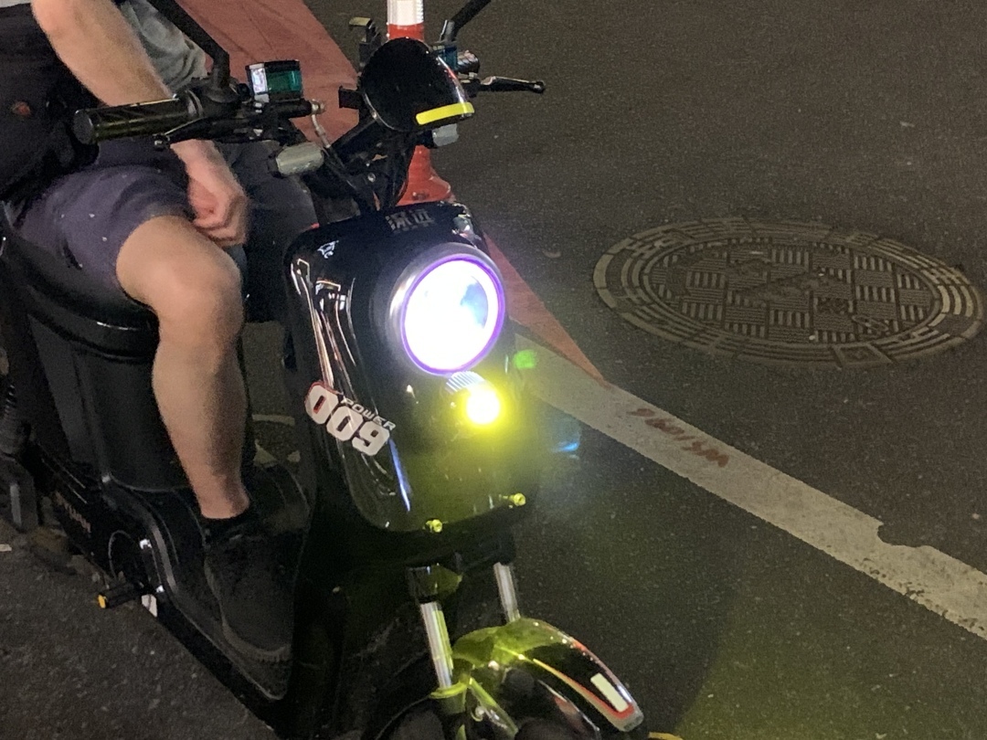 也有档主告诉记者,有的电动自行车也可以不用加装改装车头灯,只需要调整车头灯角度,把灯光抬高一点,就能增加亮度,但这样灯光也不避免会往上射到人的眼睛造成炫目。