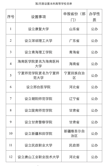 根据《中华人民共和国高等教育法》《普通高等学校设置暂行条例》《普通本科学校设置暂行规定》《本科层次职业学校设置标准(试行)》等有关规定以及第八届全国高等学校设置评议委员会考察评议结果,经教育部党组会议审议,拟同意设置康复大学等24所学校。记者发现,这24所学校中,过半数均为职业本科学校,其中就包括广东轻工职业技术大学。