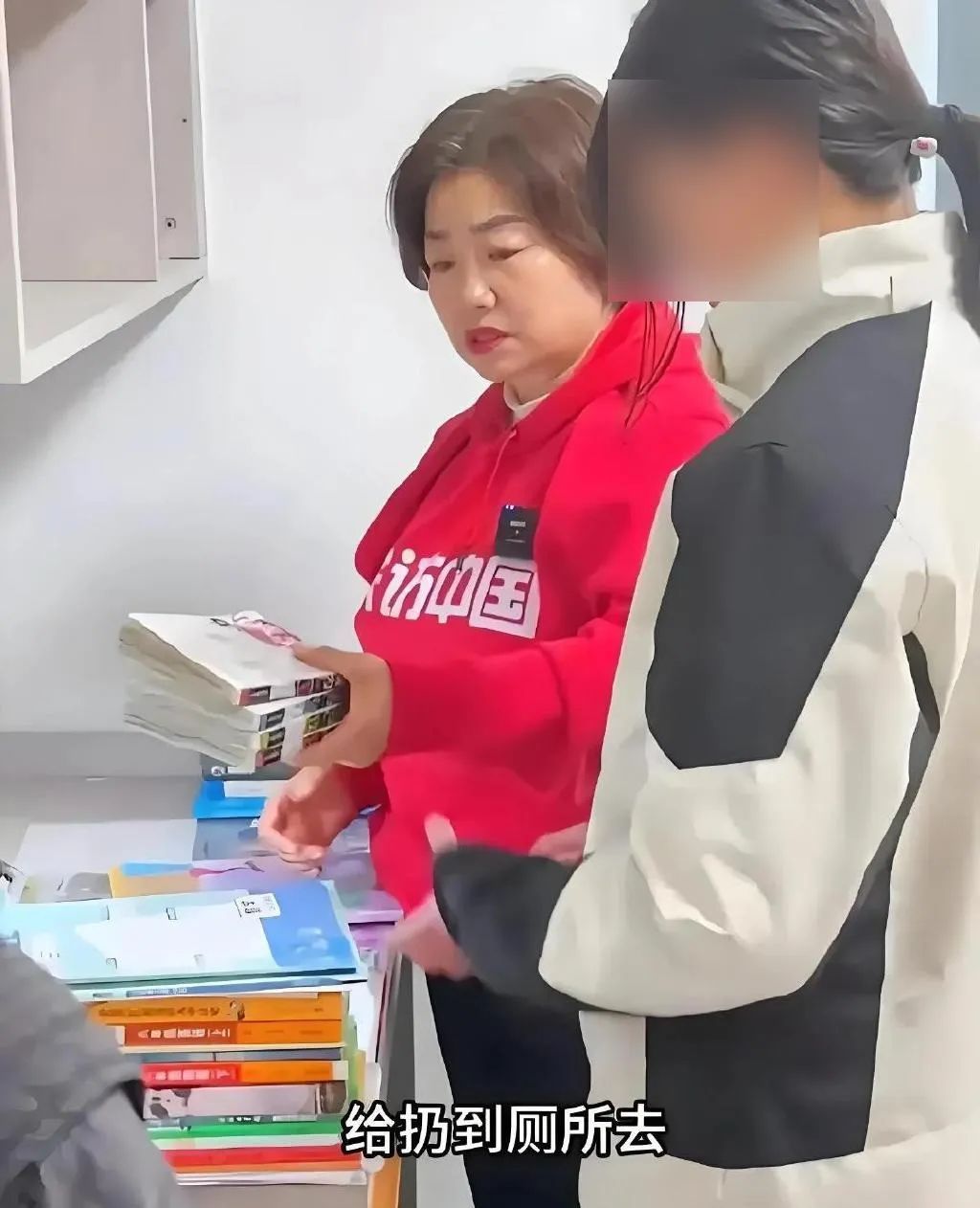 其中一条家访视频中,赵菊英让男孩砸碎手办