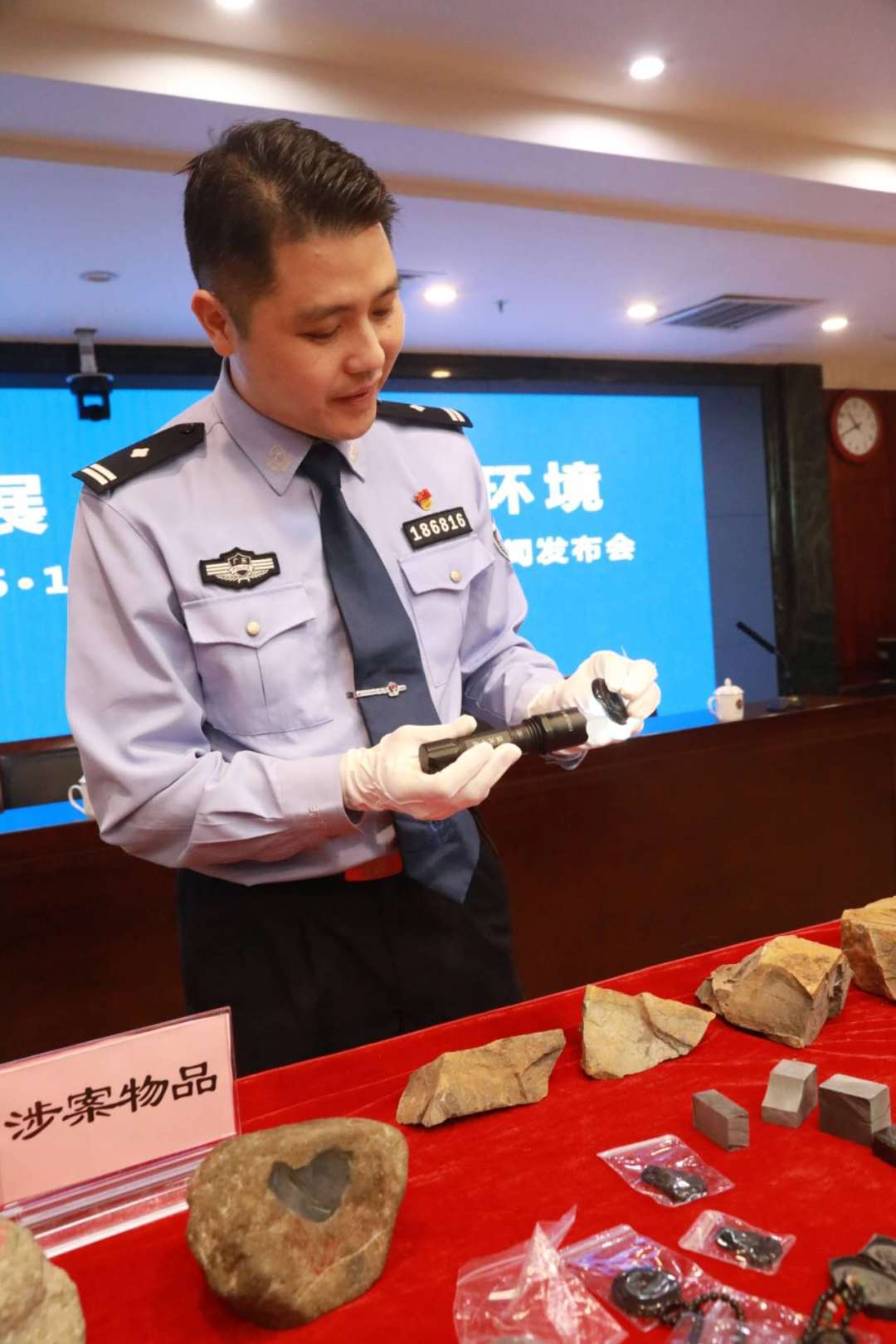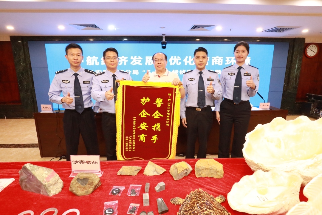 “这里怎么摆了几块‘土里土气’的石头?”2024年5月15日,在佛山市公安局南海分局召开第15个全国公安机关打击和防范经济犯罪宣传日新闻通报会的现场,几块还带着泥土的不规则石头在一众“名烟名酒名包”等琳琅满目的展品中,显得有些格格不入,引来参会记者的注意和发问。