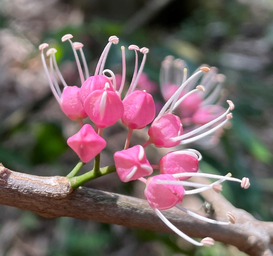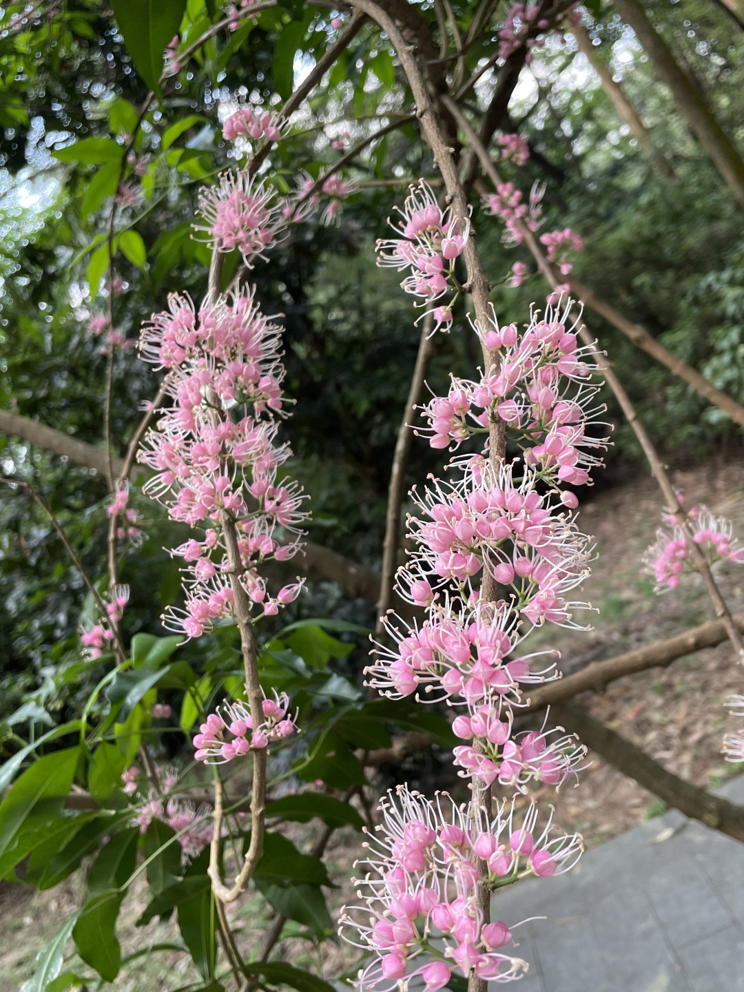 春夏之交,华南国家植物园里的奇花异草风情万种,令人目不暇接。近日,来自澳大利亚的红茱萸在澳洲植物专类园内迎来盛花期,茎干和枝条上缀满粉红色的精致小花,不但花型奇特且飘着淡淡的甜香味,充满异域风情。