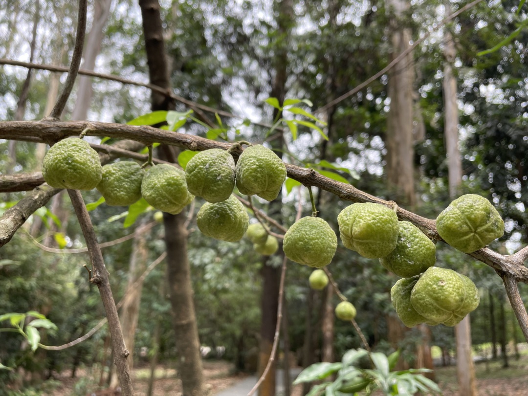 “老茎生花”和“老茎结果”这两种特有的生物现象都能在红茱萸“身上”见识到。据介绍,通常植物都是在一、二年生的枝条上开花结果,但作为芸香科蜜茱萸属植物常绿小乔木的红茱萸,却是硬生生地从茎干和枝条上开出花来。作为热带雨林植物群落中下层树种,红茱萸在茎干上开花结果不但可以方便昆虫传粉,还可以避免狂风暴雨的袭击,有利于繁衍后代,其粗壮的树干也能承受果实的重压。