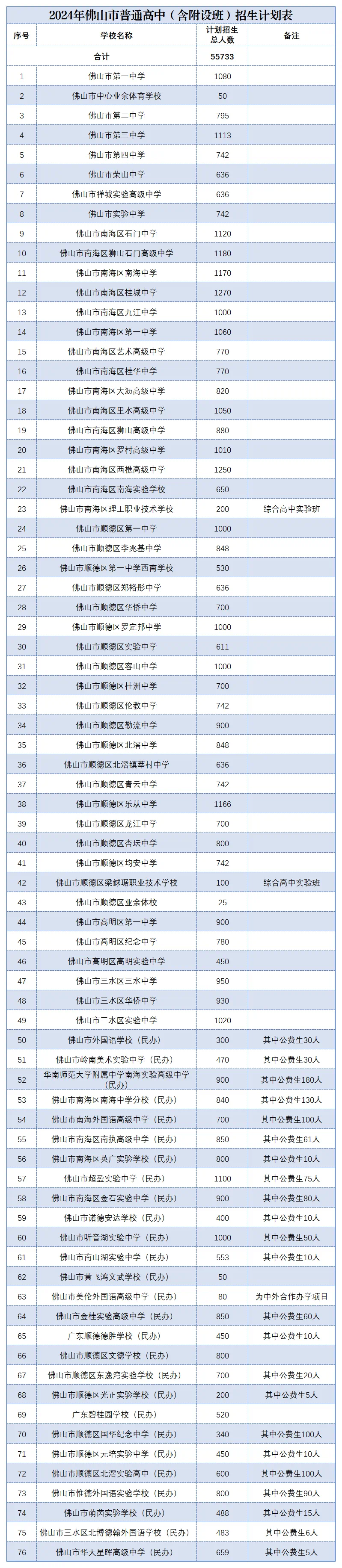 近年来,佛山通过新改扩建、充分挖潜扩班增容、积极探索职普融通等方式,多渠道增加普通高中学位,有序增加招生规模,扩大优质普通高中资源供给。2024年全市普通高中学校招生计划55733人,比去年增加5305人。