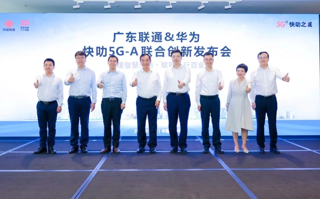 5月16日,广东联通携手华为公司举办“快叻5G-A”联合创新发布会。会上,广东联通宣布已在广州、深圳、佛山等多个地市打造5G-A多载波聚合千站连片商用示范区,构建空、天、地、海一体化全域覆盖的网络基座,并发布“随行私网Plus”等一批5G-A应用产品。广东省通信管理局局长蔡立志,广东联通总经理郝立谦、副总经理陈孟尝等出席发布会。