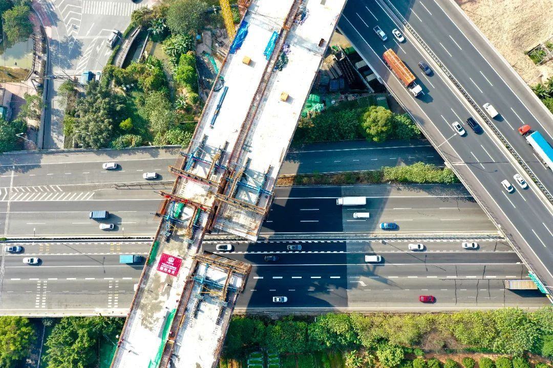 今年1月,东二环立交节点广深跨线桥连续刚构右幅中跨已顺利合龙。