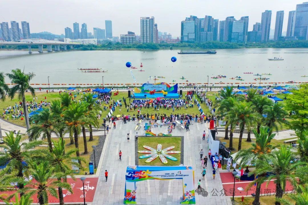 本次活动打破以往在体育场馆内以传统项目为主的表现形式,首次创新融入水上浆板、龙舟、皮划艇、水上摩托等极具特色项目,以陆上、水上户外运动“比翼齐飞”为主打亮点,设置了“体”“智”“文”三个板块,包括体育表演、体验、赛事共十余个项目。