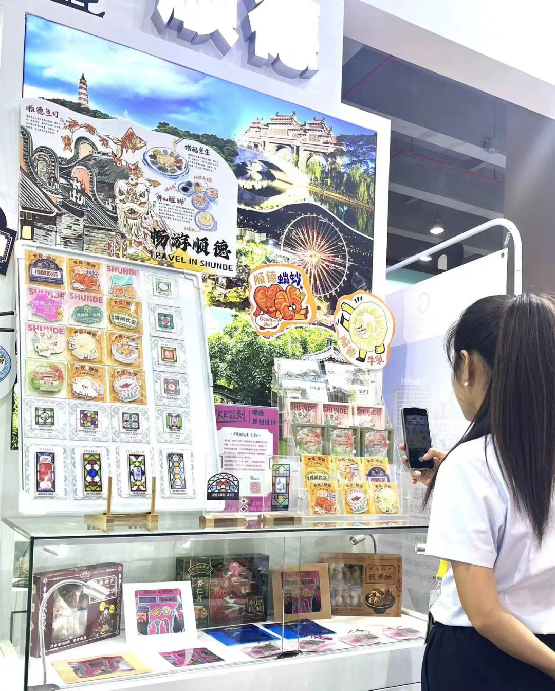 为做好今年“5·19中国旅游日”宣传推广,5月16日,顺德携手南海区、番禺区,以“南番顺旅游联盟”名义,组织区内文旅企业,参加2024广州国际旅游展览会。在顺德的展示区域,清晖园冰箱贴、龙舟仔摆件等文创产品,龙田龟苓膏、欢姐伦教糕、喜万年礼饼等特产美食以及各式旅旅游产品、宣传手册琳琅满目,展示了顺德丰富的文旅资源,吸引了众多国内外客商及市民游客前来参观了解。
