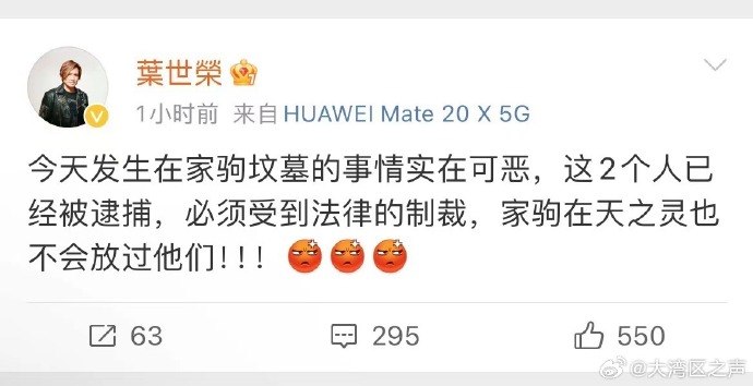 当天,Beyond鼓手叶世荣发文回应黄家驹墓碑遭破坏,他表示,“今天发生在家驹坟墓的事情实在可恶,这2个人已经被逮捕,必须受到法律的制裁。”