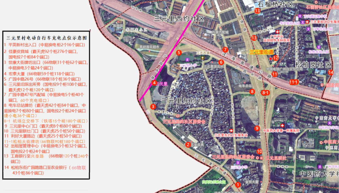 图:三元里村电动自行车充电点位示意图