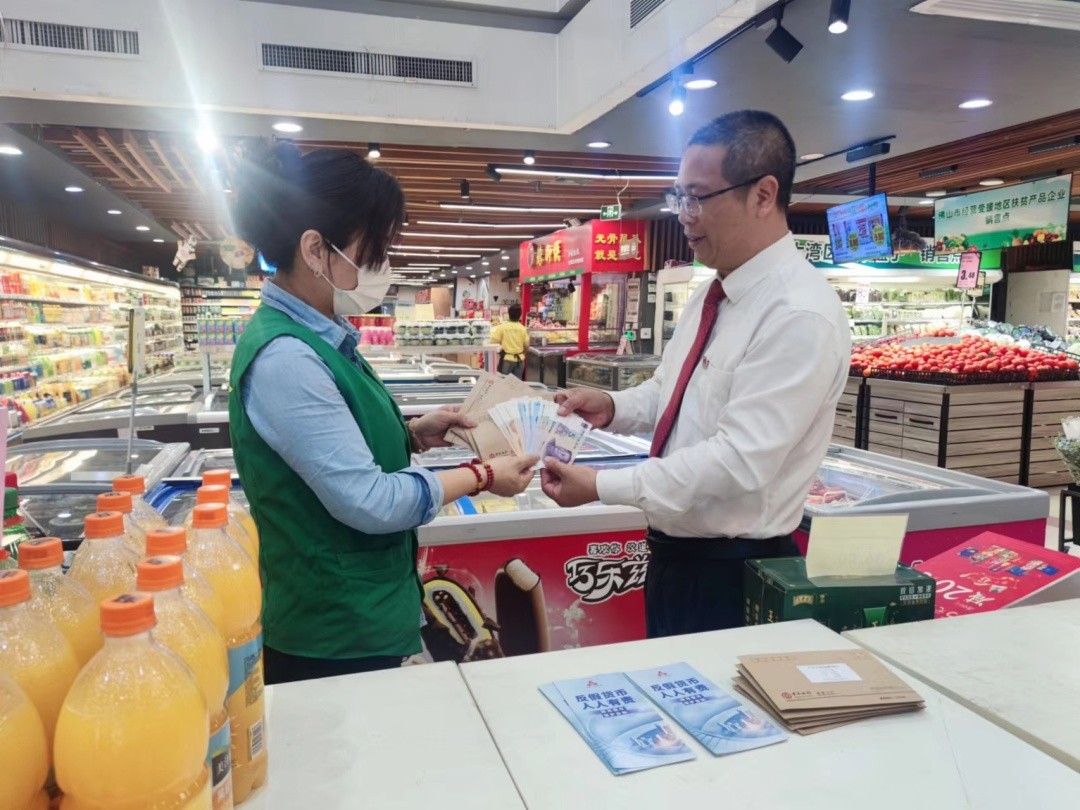 在顺德一家连锁超市,顺德中行工作人员主动联系该超市,了解其零钞需求后,上门向其提供定制化服务,现场将超市提前预约的人民币现金“零钱包”兑换给柜台收银人员,节省了超市财务人员到银行兑换的时间和人力,现金“零钱包”主动送上门的贴心服务,受到超市工作人员的一致赞许。