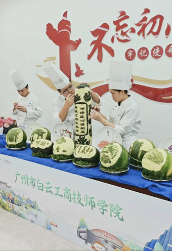 现场,广州市白云工商技师学院师生打造的果蔬雕刻、果酱画DIY展区让人眼前一亮。经过他们的巧手雕琢,普通的果蔬幻化成别致的古韵亭台、浪漫的云山珠水等,吸引了不少游人拿出手机拍照留影。