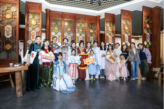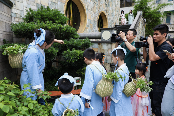 来自广东文艺职业学院的古风打卡团,更为现场增添了满满的国潮古韵氛围。一众古风爱好者身着精致的古风华服拍照打卡,俨然成为神农草堂的“流动风景”。