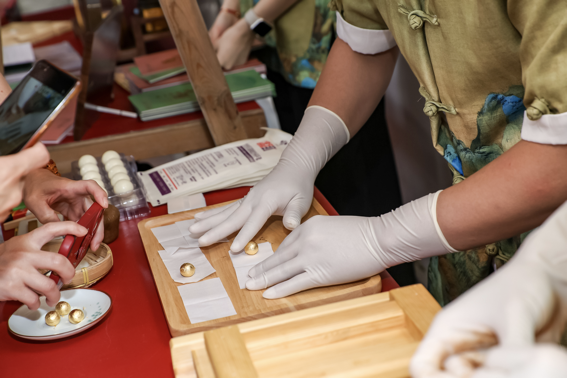 在中医药养生游体验区,光华小柴胡非遗制作技艺、王老吉药业保济丸制作技艺、安宫牛黄丸制作技艺等特色秘方,以及敬修堂跌打万花油、康寿丸等富含非遗文化的产品让游客耳目一新,感受到白云传统非遗技艺的奥妙。