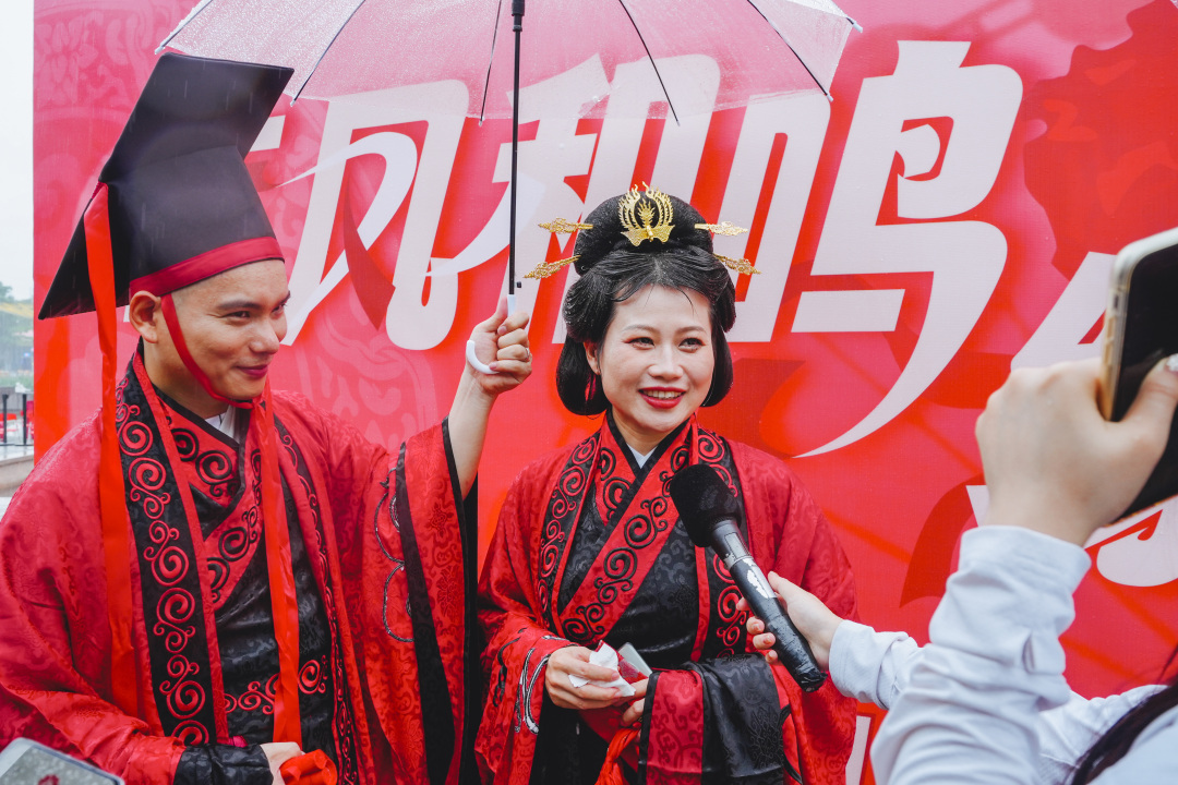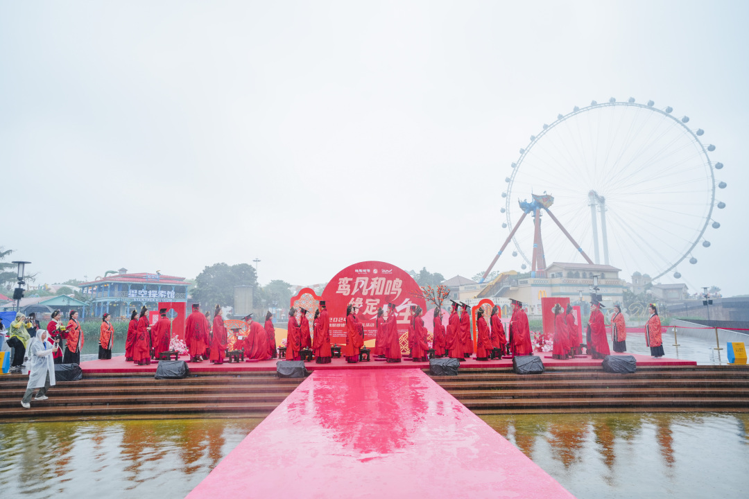 5月20日下午,伴着淅淅沥沥的雨,大湾区文旅地标顺德欢乐海岸PLUS一片喜庆——“鸾凤和鸣,缘定今生”2024“缘聚顺德”集体婚礼活动举行,15对新人共赴浪漫之约,许下一生承诺。“520”因谐音“我爱你”而成为不少年轻人表达爱意、喜结连理的好日子。