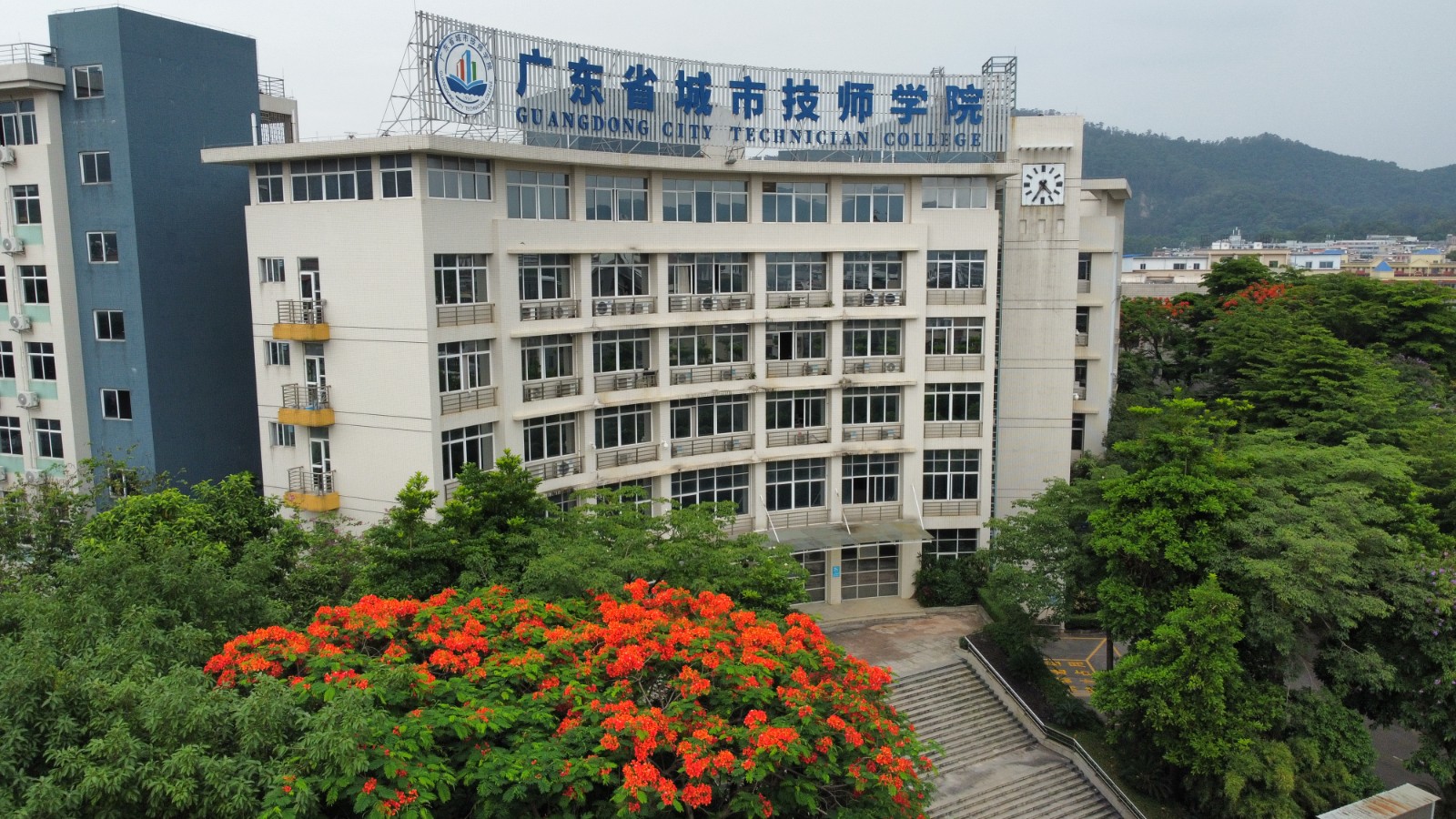 在凤凰街华美路28号广东省城市技师学院校门口,一株凤凰花伸出头来展示着她的热情和奔放!(摄影:喻意良)