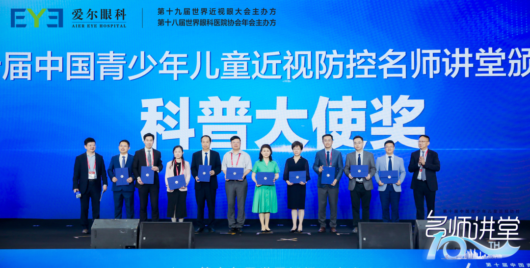 活动现场,爱尔眼科为过去十年间与名师讲堂携手前行的专家们颁发了特别贡献奖、科普大使奖。