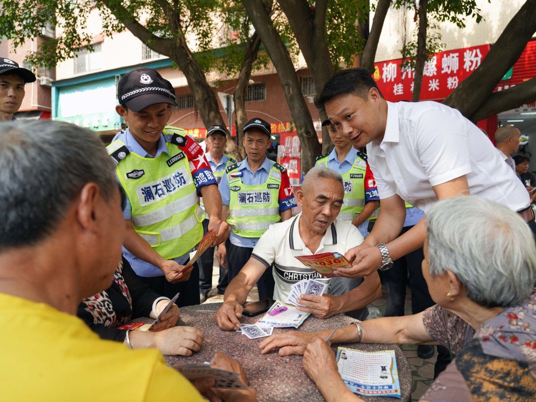 “凡是刷单,都是诈骗”“凡是通知中奖让你先交钱,都是诈骗!”…走进“状元村”黎冲村,只要是人流高峰的时段,无论是市场里的“大声公”,还是游弋在大街的巡逻车,都会重复播放着这样的预防电信网络诈骗宣传。在公园里,黎冲村治保会的“飞鸿联盟”的队员也会不断派发反诈单张,不厌其烦地向老人家们讲解反诈知识。“只要涉及金钱的,我们一定都会加倍留心。”一名婆婆笑着向队员说,同时还为他们竖起了大拇指。