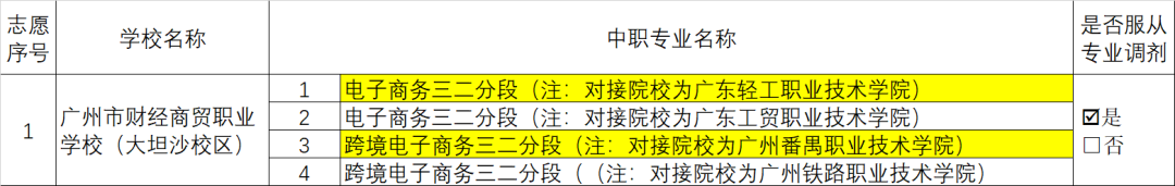 有眼尖的同学可能会发现,虽然是同一个校区、同一个三二分段专业,但对应升读的高职院校是不相同的。对于这样的情况来说,实际上这是算作两个不同的专业志愿,应该分开填报。